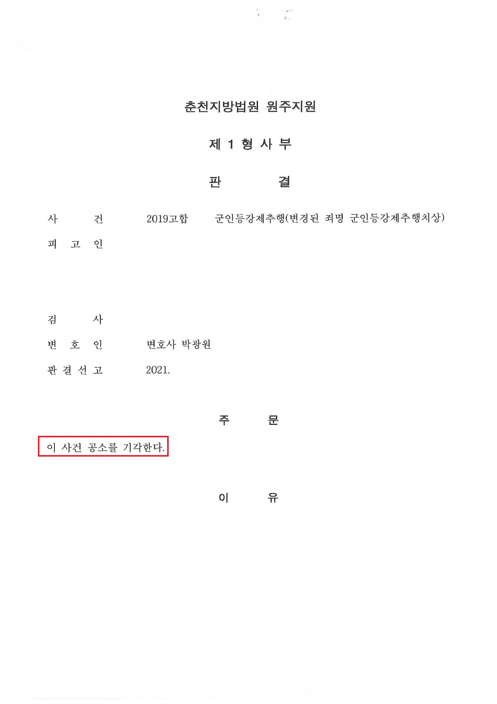 Á¦¸ñ [Çü»ç]±ºÀÎµî °­Á¦ÃßÇàÀ¸·Î ±â¼Ò ´çÇÑ »ç°Ç¿¡ ´ëÇØ °ø¼Ò±â°¢ ÆÇ°áÀ» ¹ÞÀº ¼º°ø »ç·Ê