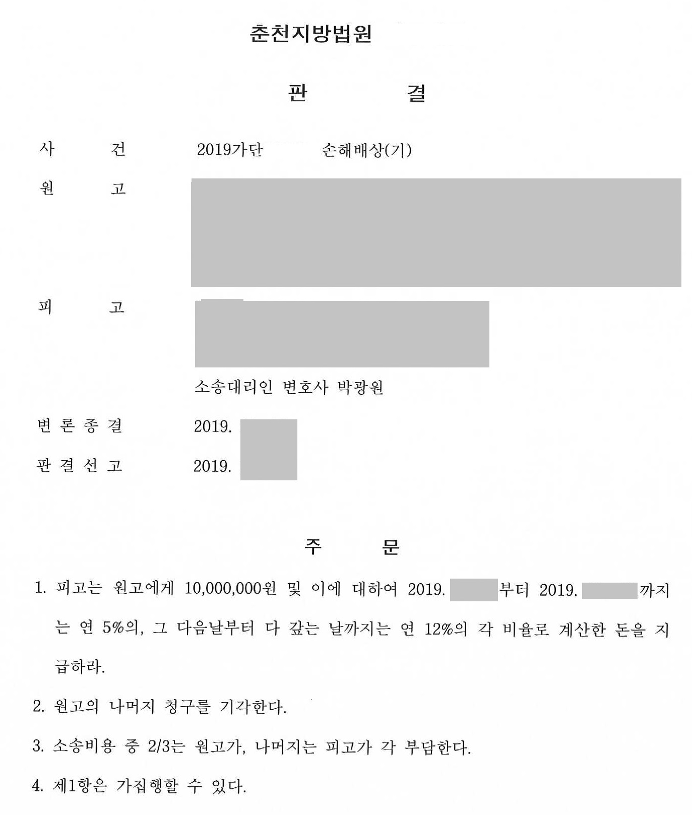 ¿ø°í´Â ºÎÁ¤ÇàÀ§¸¦ ÀÌÀ¯·Î ÀÇ·ÚÀο¡°Ô 3õ¸¸¿øÀ» û±¸ÇÏ¿´À¸³ª ¹Ú±¤¿ø º¯È£»ç´Â ÀÇ·ÚÀÎÀÇ ±ÍÃ¥»çÀ¯ Á¤µµ°¡ ½ÉÇÏÁö ¾Ê´Ù°í Àû±ØÀûÀ¸·Î ÁÖÀåÇÏ¿´°í, ¹ý¿øµµ À̸¦ ¹Þ¾Æ µé¿© ÇǰíÀÇ Ã¥ÀÓÀ» 1 õ¸¸¿øÀ¸·Î ´ëÆø °¨ÃàÇÏ¿© ÀÎÁ¤ÇÑ »ç·Ê ÀÔ´Ï´Ù.