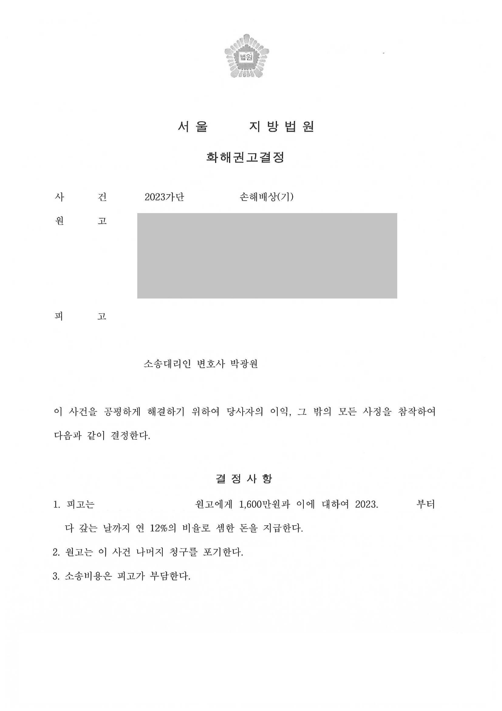 Á¦¸ñ [»ó°£¼Ò¼Û]»ó°£ ¼Ò¼Û¿¡¼­ ¿ø°í û±¸ ±Ý¾×À» °¨ÃàÇÏ¿© È­ÇØ±Ç°í °áÁ¤À» ¹ÞÀº ¼º°ø»ç·Ê