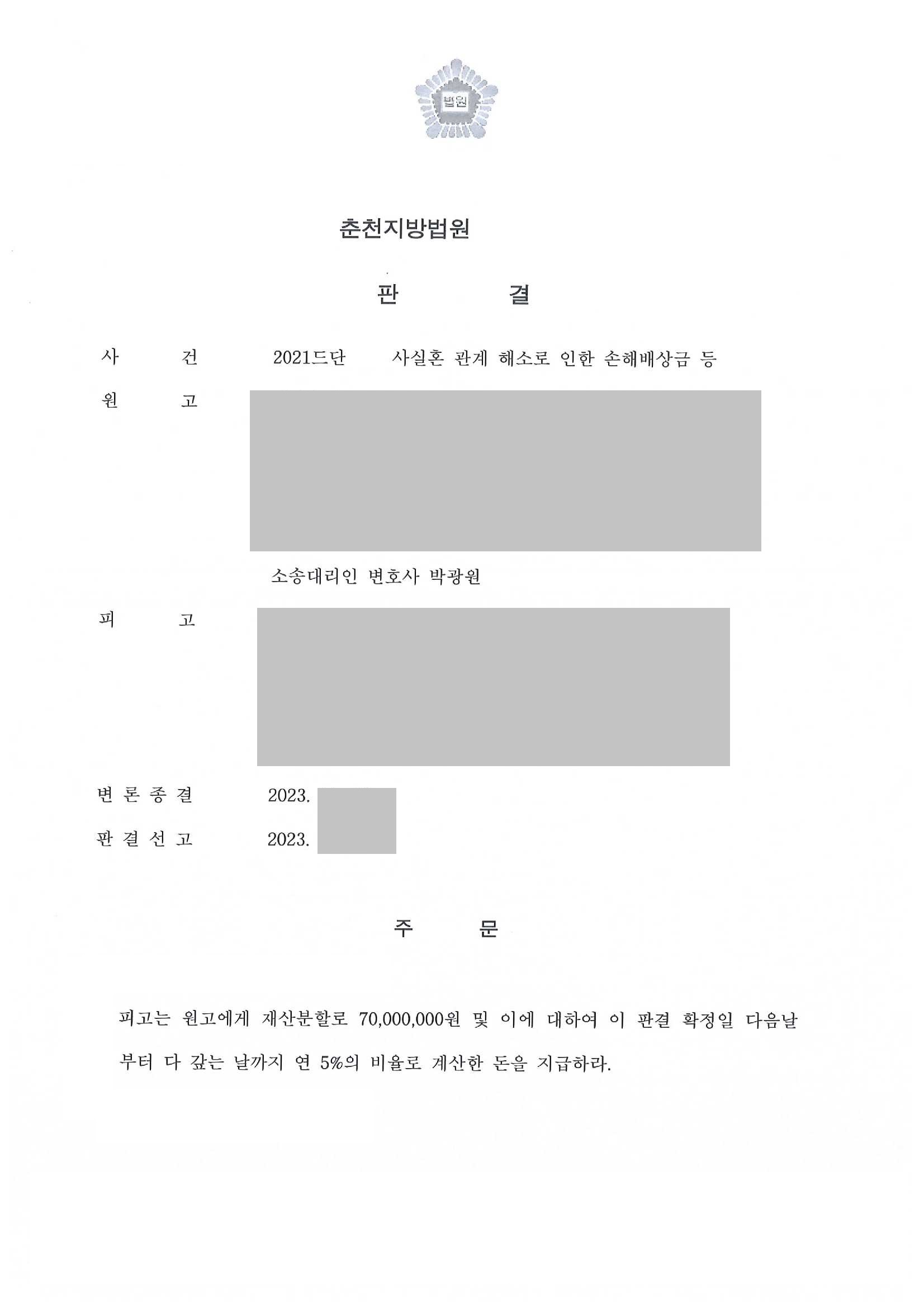 Á¦¸ñ [ÀÌÈ¥ Àç»êºÐÇÒ]»ç½ÇÈ¥ °ü°è ÆÄźÀ¸·Î ÀÎÇÑ Àç»êºÐÇÒ Ã»±¸ ¼Ò¼Û¿¡¼­ ½Â¼ÒÇÑ ¼º°ø»ç·Ê
